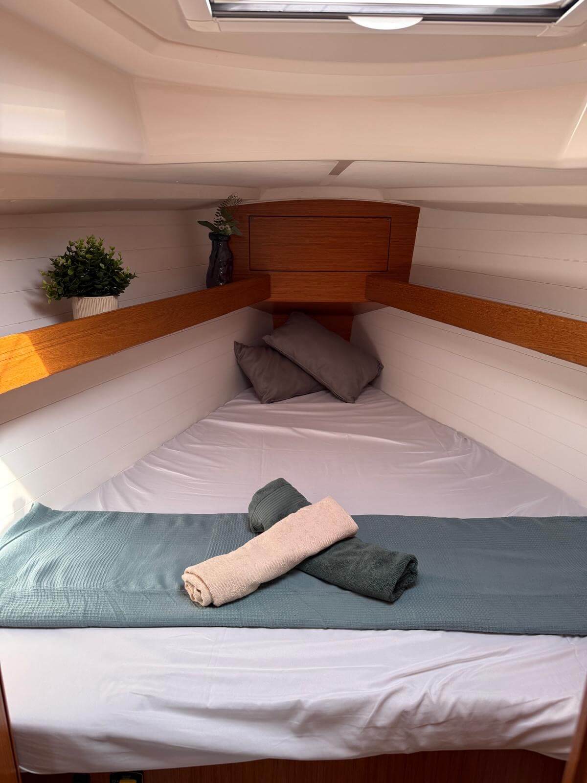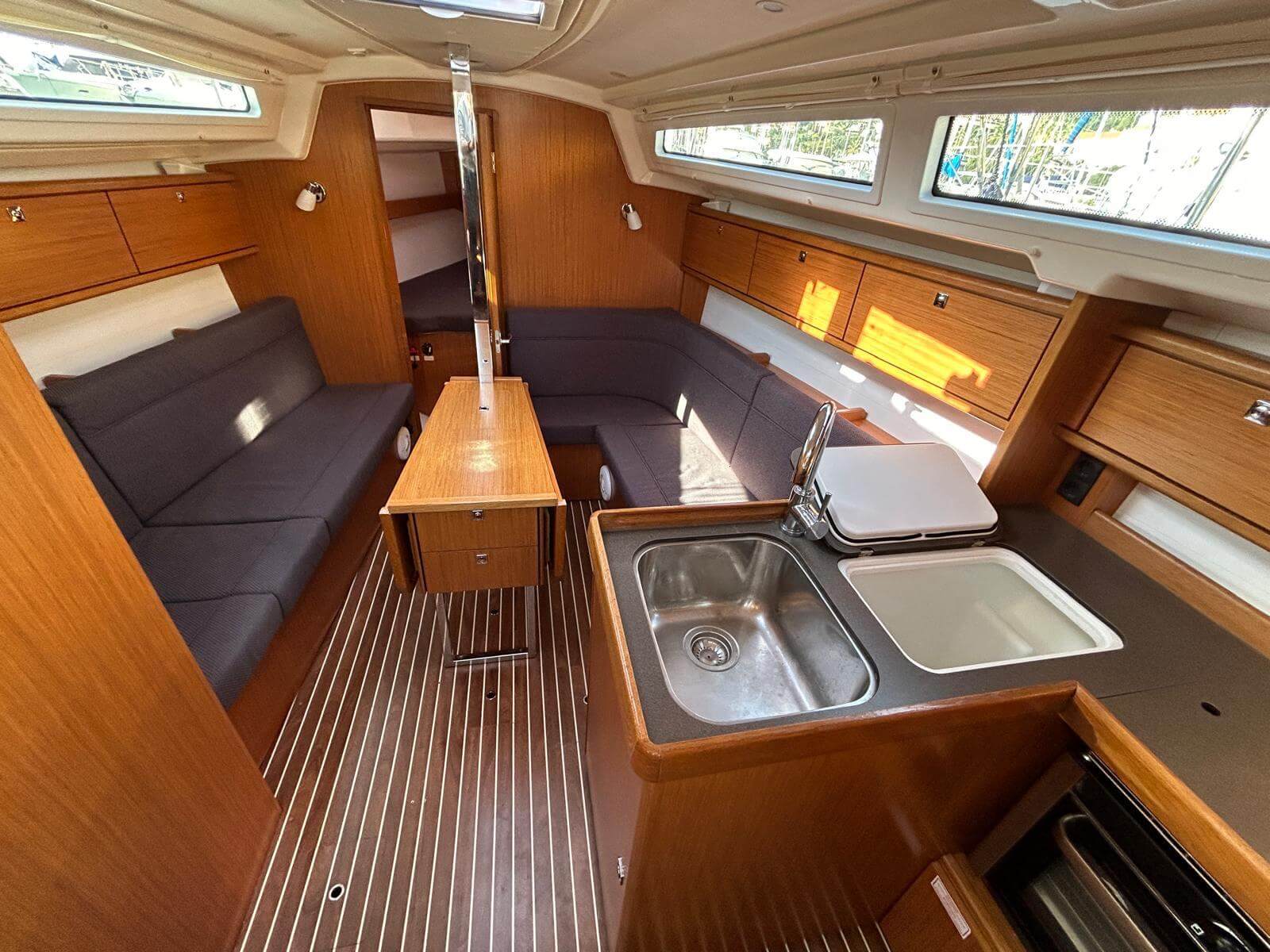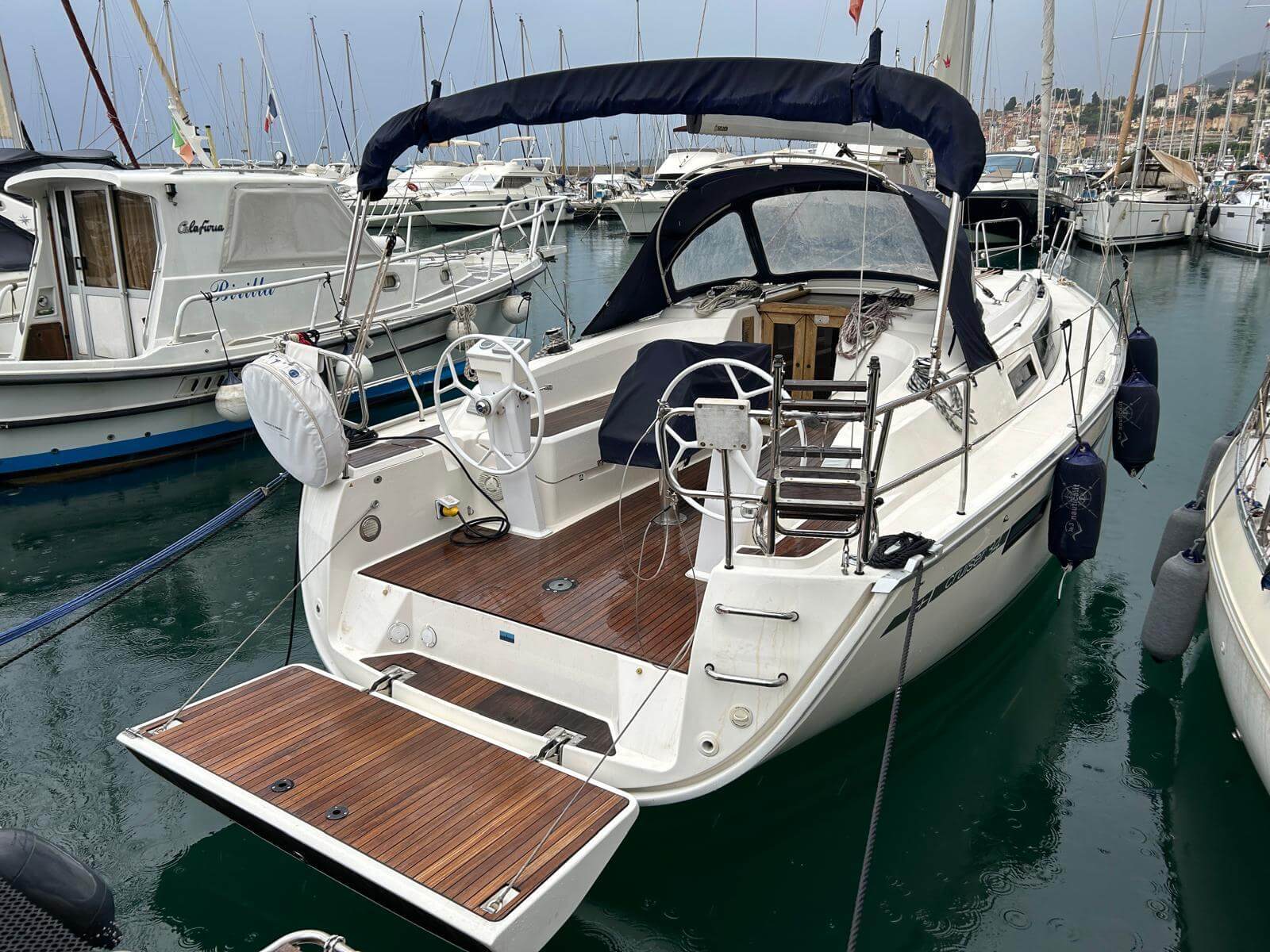 Bavaria 34 del 2017, un modelo de velero con líneas modernas con una eslora de 10m y una manga de 3,42m. Una embarcación de crucero con 2 ruedas que la dan amplitud a la bañera y con una plataforma de baño que hará de tus vacaciones un placer a la hora de bañarse. Dispone de 3 camarotes y un lavabo, cocina, comedor con sofás a ambos lados. La vela mayor enrollable en mástil que hará que las maniobras de izado de la mayor sean más sencillas para el patrón. Para el fondeo dispone de molinete eléctrico.