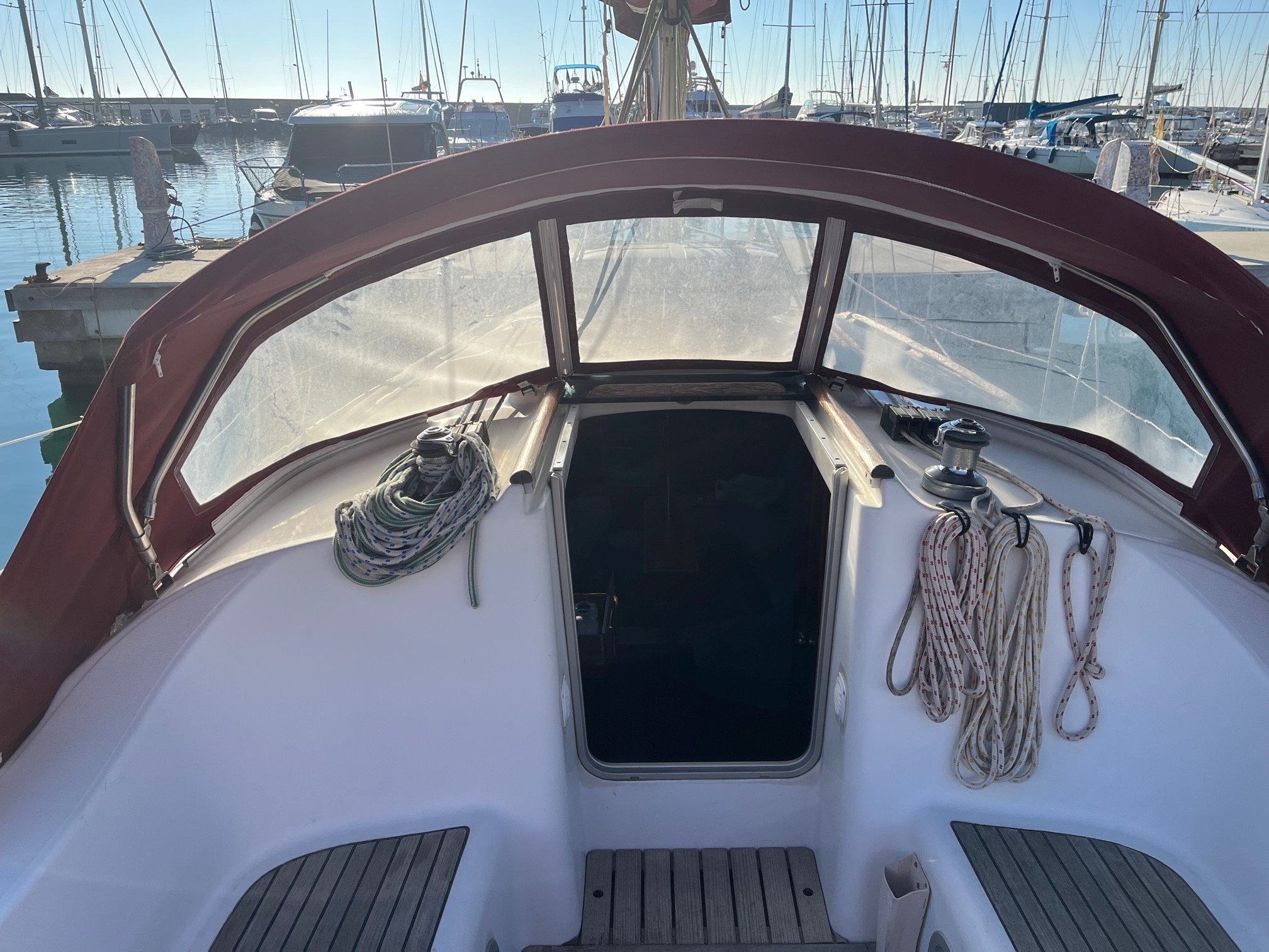 Cruise sailboat with capacity for 8 crew members, with three large cabins. Equipped with all the safety material to be able to navigate in zone 2, to be able to cross to the Balearic Islands and rentals or walks along the Garraf coast, with fantastic views of Sitges from the sea.