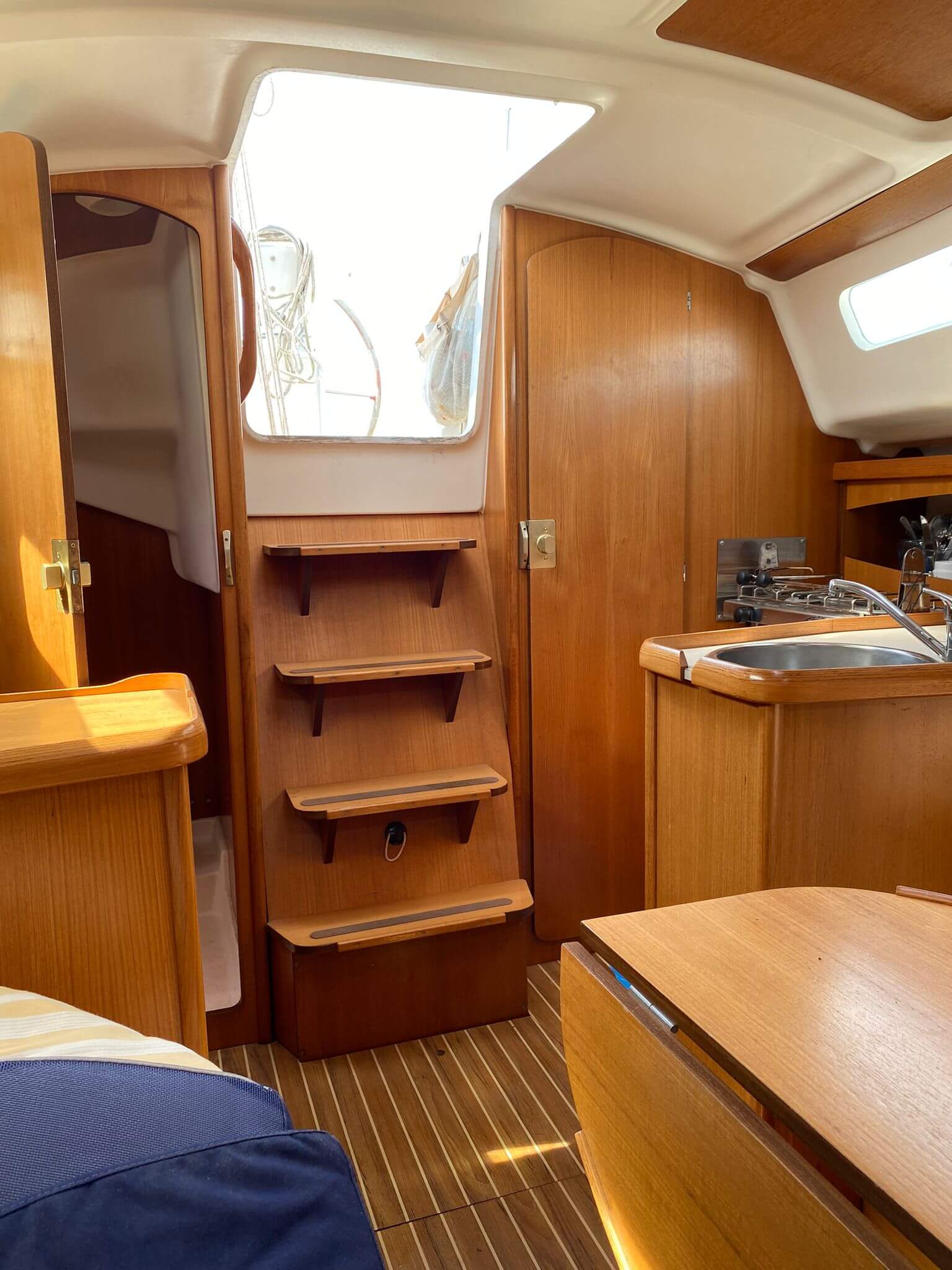 Velero Jenneau Sun Odyssey 29.2 del 2004, con una eslora de 9 metros. Una embarcación para disfrutar de un día en el mar, navegando a vela o fondeados en alguna cala del Garraf y disfrutando de las aguas de esta zona. Dotado con la electrónica necesaria para una navegación costera, con nevera eléctrica, dos camarotes y un baño, cocina y comedor con dos sofás. Dotado de una ducha de agua dulce en la popa, y una escalera de baño para salir del agua cómodamente. Vamos, un velero de dimensiones ideales para adentrarse en el mundo de la vela y disfrutar de la costa.
