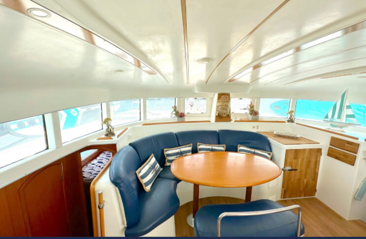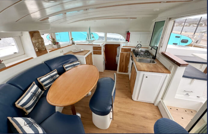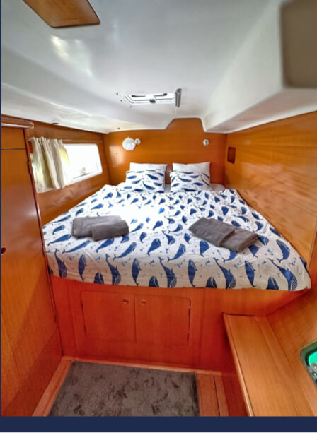 Fantástico Catamarán Lagoon 380 renovado en el 2022, con 4 camarotes dobles, dos lavabos, placas solares. Una embarcación para pasar unas vacaciones inolvidables en las islas Baleares o en la Costa Mediterránea, o pasar un día por la costa del Garraf.