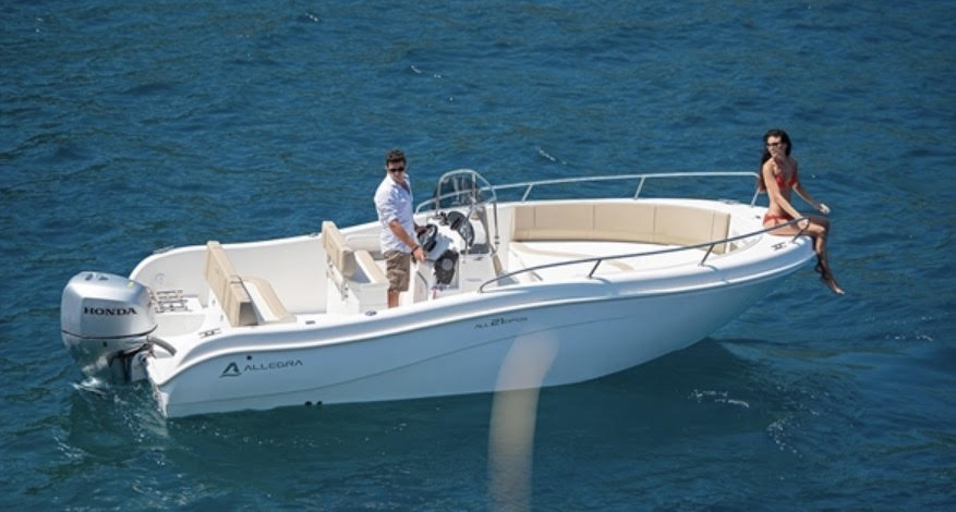 Lancha open nueva de 6,35 metros de eslora con motor fueraborda de 130Cv, con capacidad para 8 personas. Las características de este modelo de lancha son ideales para pasar un día costeando por el Garraf, con un solarium de proa con colchonetas, acceso por popa con escalera para facilitar el baño.
